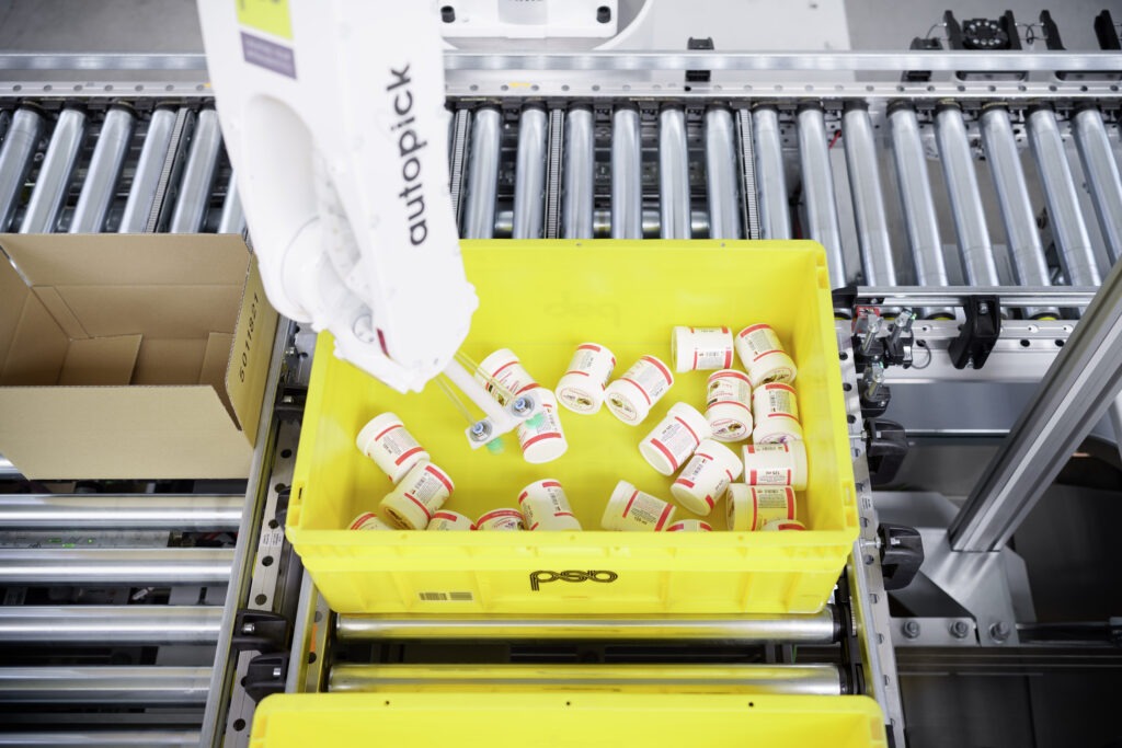 Das KI-gestützte Vision-System erkennt greifbare Flächen auf den Artikel im Quellbehälter und berechnet innerhalb weniger Millisekunden Greifpunkte und kollisionsfreie Bahnen für den Roboter. Dieser kann dadurch unbekannte Produkte aus Schüttgut mit Vakuumsaugern greifen und im Zielbehälter oder Versandkarton ablegen. Ein vorheriges Teach-in der einzelnen Produkte (z. B. durch Einlesen der CAD-Daten) ist nicht notwendig. Somit können neue, unbekannte Artikel ohne Zusatzaufwand sofort in die Produktpalette aufgenommen und mit dem Roboter vollautomatisch kommissioniert werden.